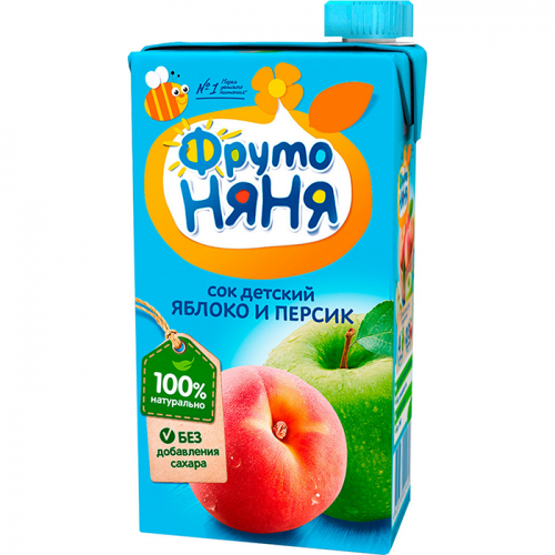 Сок детский изготовлен из пюре яблок и мякоти персика.